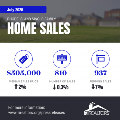 Warwick, R.I. – August 21, 2025 -- Rhode Island’s single-family home market showed some stabilization in July as the supply of homes for sale continued to grow. Data released by the Rhode Island Association of Realtors highlighted a slight .3% drop in sales activity of single-family homes and a two percent gain in the median price year-over-year to $505,000. The July numbers also indicated a slow but steady gain in the supply of homes for sale.