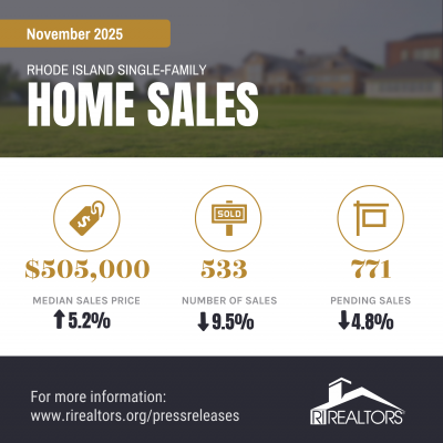 Warwick, R.I. – December 18, 2025 – Today, the Rhode Island Association of Realtors released sales data that reflects a slowdown in residential single-family home sales in November compared to 12 months earlier, while median sales price continued to rise. Single-family home sales activity fell 9.5% last month while the median price of sales climbed to $505,000, a 5.2% year-over-year increase. The gain is reflective of a market that catered to buyers of higher-priced homes than lower-priced, starter homes due to inventory and affordability issues.