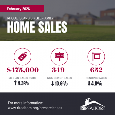 Warwick, R.I. – March 19, 2026 – In February, a combination of weather, economic uncertainty, and the continued critical supply shortage, caused R.I.’s home sales to fall 13.6% year-over-year, according to a new report released by the Rhode Island Association of Realtors. Last month’s 349 single-family home sales signified the lowest number of monthly sales recorded since February 2011. Pending sales, those under contract but not completed by month’s end, fell by 4.8%.